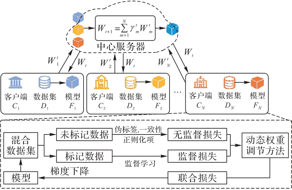 关键词: 联邦学习, 半监督学习, 恶意流量检测, 一致性正则化, 动态聚合权重