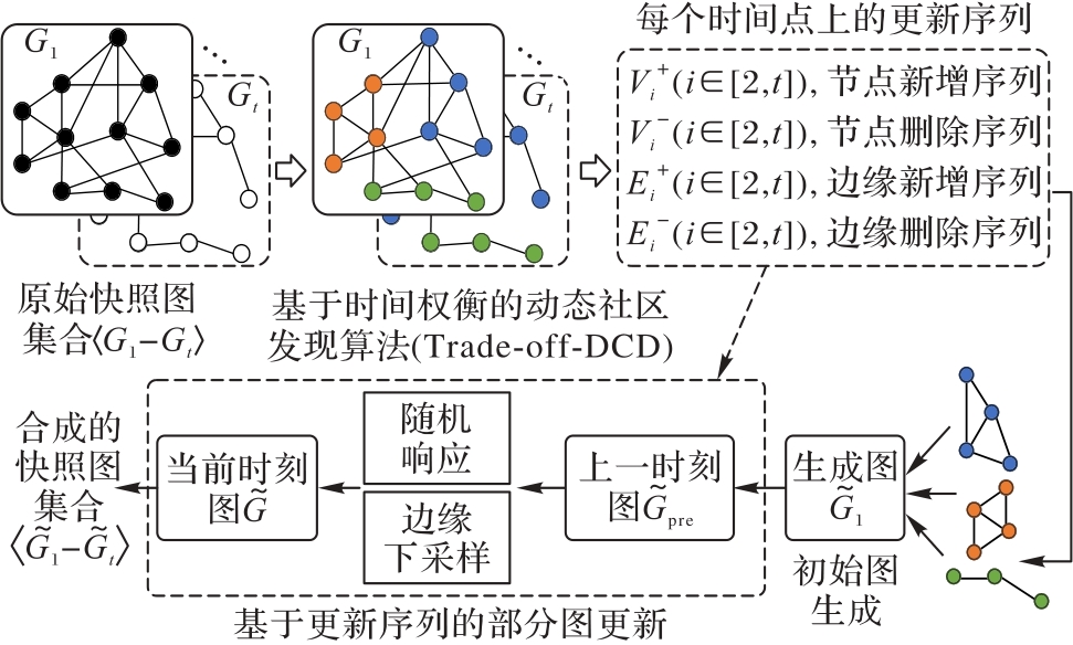 针对现有动态社交网络隐私保护中存在的添加噪声尺度过大以及迭代过程中误差积累的问题,提出一种面向部分图更新的动态社交网络隐私发布方法PGU-DNDP(Partial Graph Updating in Dynamic social Network based on Differential Privacy)。首先,通过时间权衡的动态社区发现算法收集网络快照图集合中的更新序列;其次,使用静态图发布方法得到初始生成图;最后,基于上一时刻的生成图和当前时刻更新序列完成部分图更新。部分更新的方法可以降低全图扰动带来的过量噪声并优化时间成本,避免合成图密集情况发生。此外,在部分更新中设计一种边缘更新策略,结合自适应的扰动和下采样机制,通过隐私放大减小迭代过程中的累积误差,从而有效提高合成图的精度。在3个合成数据集和2个真实的动态数据集上的实验结果表明,PGU-DNDP能够在保证动态社交网络隐私需求的同时,比主流的静态图生成方法PrivGraph(differentially Private Graph data publication by exploiting community information)保留更高的数据效用。