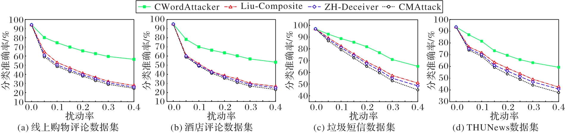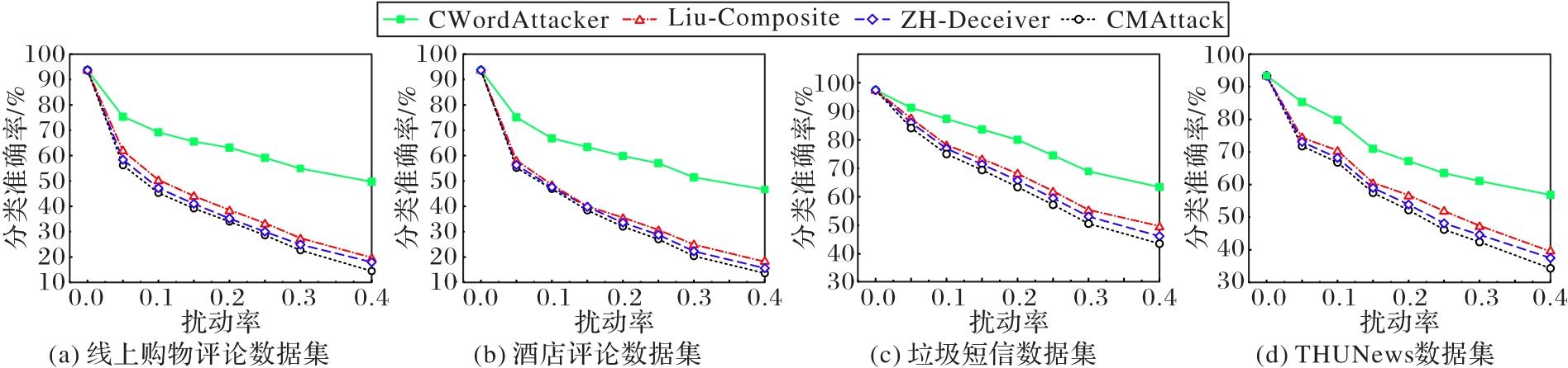 攻击方法 | 线上购物评论 | 酒店评论 | 垃圾短信 | THUNews | ||||||||