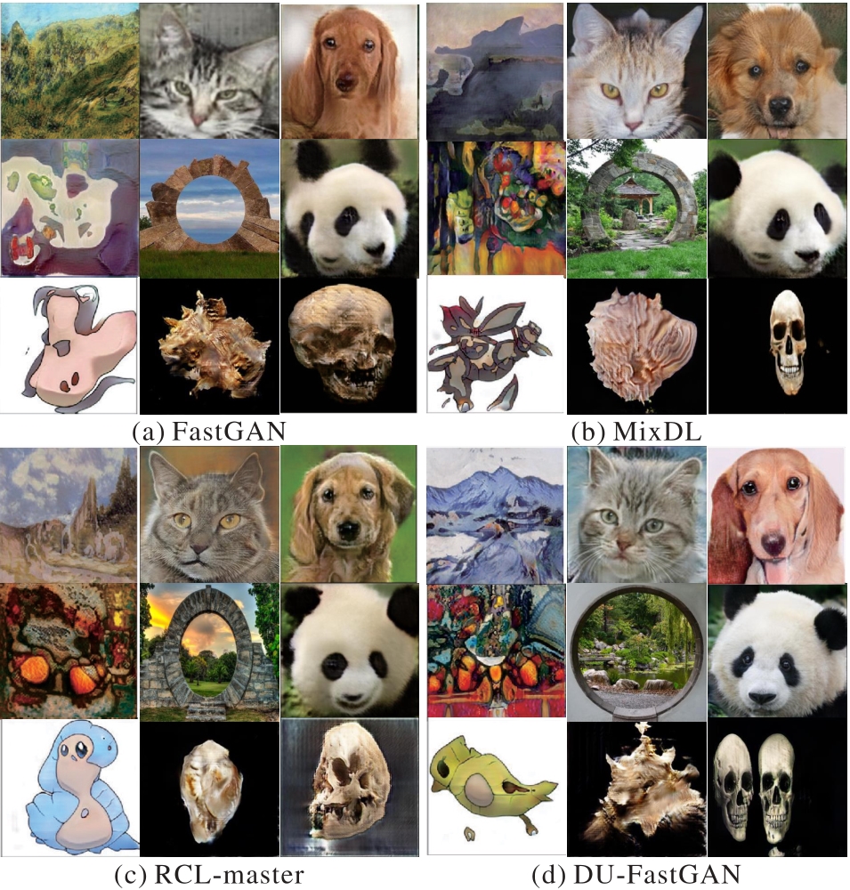 近年来,生成对抗网络(GAN)被广泛应用于数据增强,能有效缓解训练样本不足的问题,对模型训练具有重要研究意义。然而,现有用于数据增强的GAN模型存在对数据集要求高和模型收敛不稳定等问题,导致生成的图像易出现失真和形变。因此,提出一种基于动态上采样的轻量级GAN——DU-FastGAN(Dynamic-Upsample-FastGAN)进行数据增强。首先,通过动态上采样模块构建生成器,使生成器能够根据当前特征图的大小采用不同粒度的上采样方法,从而重建纹理,提高合成的整体结构和局部细节的质量;其次,为了使模型能够更好地获取图像的全局信息流,提出权重信息跳跃连接模块,以减小卷积及池化操作对特征的扰动,提高模型对不同特征的学习能力,使得模型生成图像的细节更逼真;最后,给出特征丢失损失函数,通过计算采样过程中对应特征图之间的相对距离提高模型生成质量。实验结果表明,相较于FastGAN、MixDL(Mixup-based Distance Learning)和RCL-master(Reverse Contrastive Learning-master)等方法,DU-FastGAN在10个小数据集上的FID(Fréchet Inception Distance)的最大降幅达到23.47%,能够有效缓解生成图像的失真和形变问题,并提高了生成图像的质量;同时,DU-FastGAN的模型训练时间在600 min内,实现了轻量级开销。