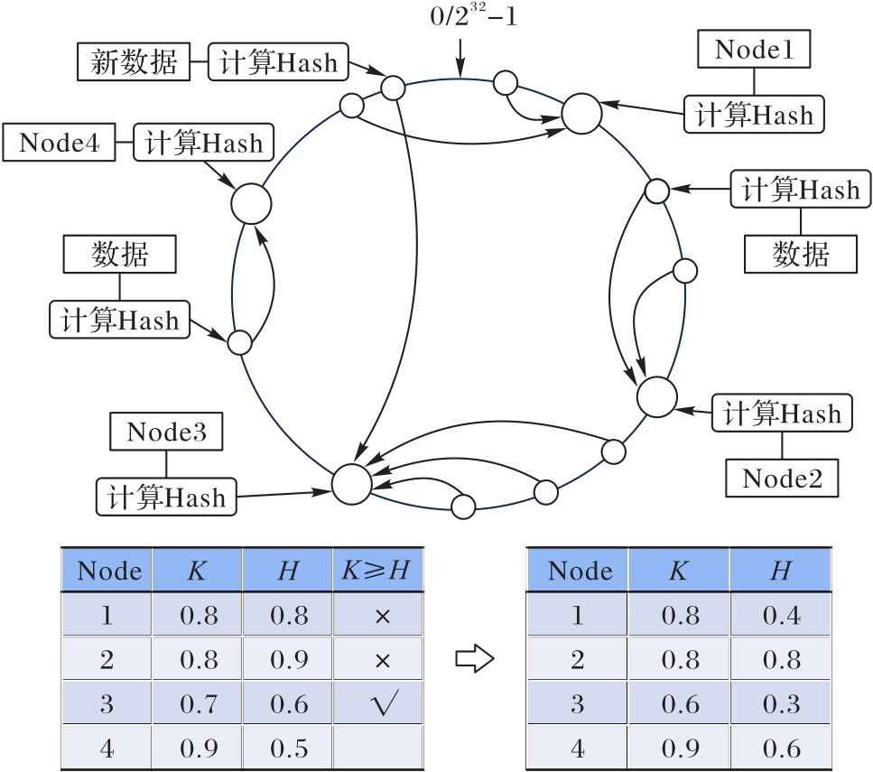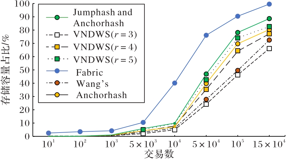 为了解决区块链数据量剧增带来的存储问题,提出一种改进的一致性哈希算法,以实现区块链的存储扩展。针对Hyperledger Fabric在企业级应用中节点存储负载不均和数据倾斜的问题,基于一致性哈希算法提出了改进方案——基于虚拟节点分配与动态权重策略的哈希算法(VNDWS)。首先,采用虚拟节点分配机制为每个节点动态分配多个虚拟节点,使数据在哈希环中均匀分布,减少负载不均;其次,应用动态权重机制,基于节点存储能力和网络延迟等性能指标实时调整权重,使高性能节点承担更多数据负载,从而优化数据分配和存储效率。仿真实验结果表明,与传统区块链Fabric网络和传统一致性哈希算法相比,VNDWS的节点存储消耗分别降低了48.31和6.39个百分点,而数据查询效率分别提升了96.25%和21.95%。VNDWS在存储扩展方面能有效降低节点存储消耗并提高查询效率。
