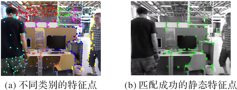 视觉同步定位与建图(VSLAM)技术常常用于室内机器人的导航与感知,然而VSLAM的位姿估算方法是针对静态环境的,当场景中存在运动对象时,可能会导致定位和建图失败。针对此问题,提出了一个结合实例分割与聚类的VSLAM系统。所提系统使用实例分割网络生成场景中动态对象的概率掩膜,同时利用多视图几何的方法检测场景中的动态点,并将检测到的动态点与获得的概率掩膜匹配之后确定动态物体的精确动态掩膜;利用动态掩膜删除动态物体的特征点,然后利用剩余的静态特征点准确估计摄像机的位置。为了解决实例分割网络欠分割的问题,采用深度填充算法和聚类算法保证动态特征点完全删除。最后,重建图片被动态物体遮挡的背景,在正确的相机位姿下建立静态稠密点云地图。在公开的TUM(Technical University of Munich)数据集上的实验结果表明,在动态环境中,所提系统在保证实时性的同时能实现鲁棒的定位与建图。