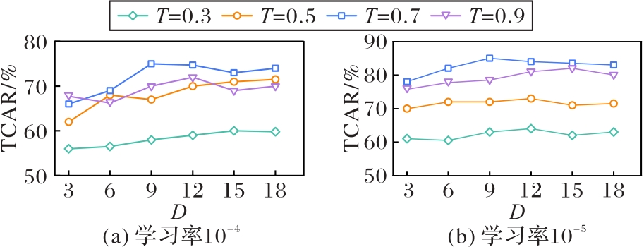 解码器层数 | α | 自注意力头数 | TCAR/% |