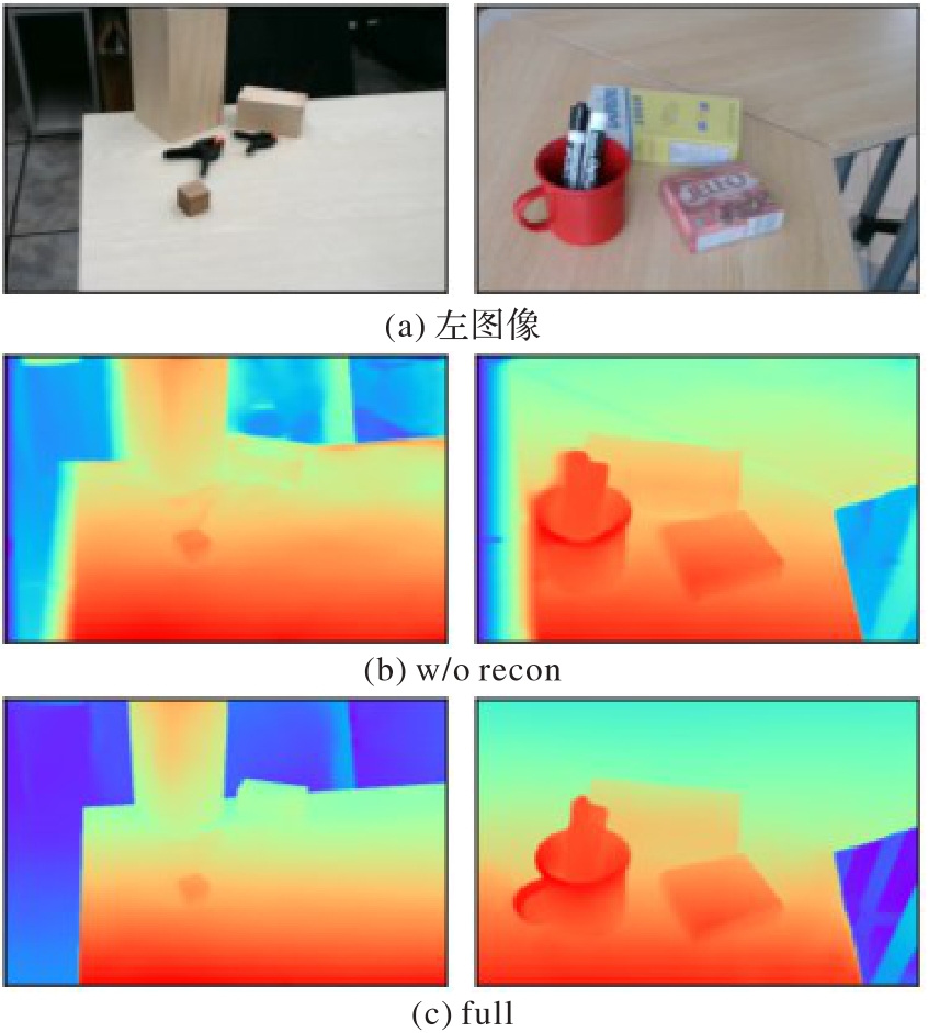 通过机器视觉算法对目标进行识别并定位它的空间坐标是实现机械臂视觉抓取的关键。针对基于双目视觉的目标识别与定位中定位精度低、运行效率不高等问题,提出面向机械臂抓取的联合双目视觉目标检测与立体深度估计的网络结构BDS-YOLO(Binocular Detect and Stereo YOLO)及基于BDS-YOLO的目标定位算法。该算法联合目标检测与立体深度估计算法,利用注意力机制进行跨视图特征信息交互,从而提高特征表达能力,使网络可以通过深度特征匹配获得高质量视差图,再经过自注意力机制进一步提升后,由三角测量原理转换为深度信息。BDS-YOLO网络采用多任务学习,同时训练目标检测与立体深度估计网络,并使用合成与真实数据共同训练。针对真实数据不易标注密集深度的问题,采用自监督学习技术优化由视差重建图像的过程,以提高BDS-YOLO网络对现实世界的泛化能力。实验结果表明:BDS-YOLO网络在真实数据集上对目标检测的平均精度(AP)比YOLOv8l高6.5个百分点,预测的视差和转换后的深度优于专门的立体深度估计算法,推理速度可达20 frame/s以上,对目标对象的识别和定位均优于对比方法,能较好地满足目标实时检测与定位的需求。