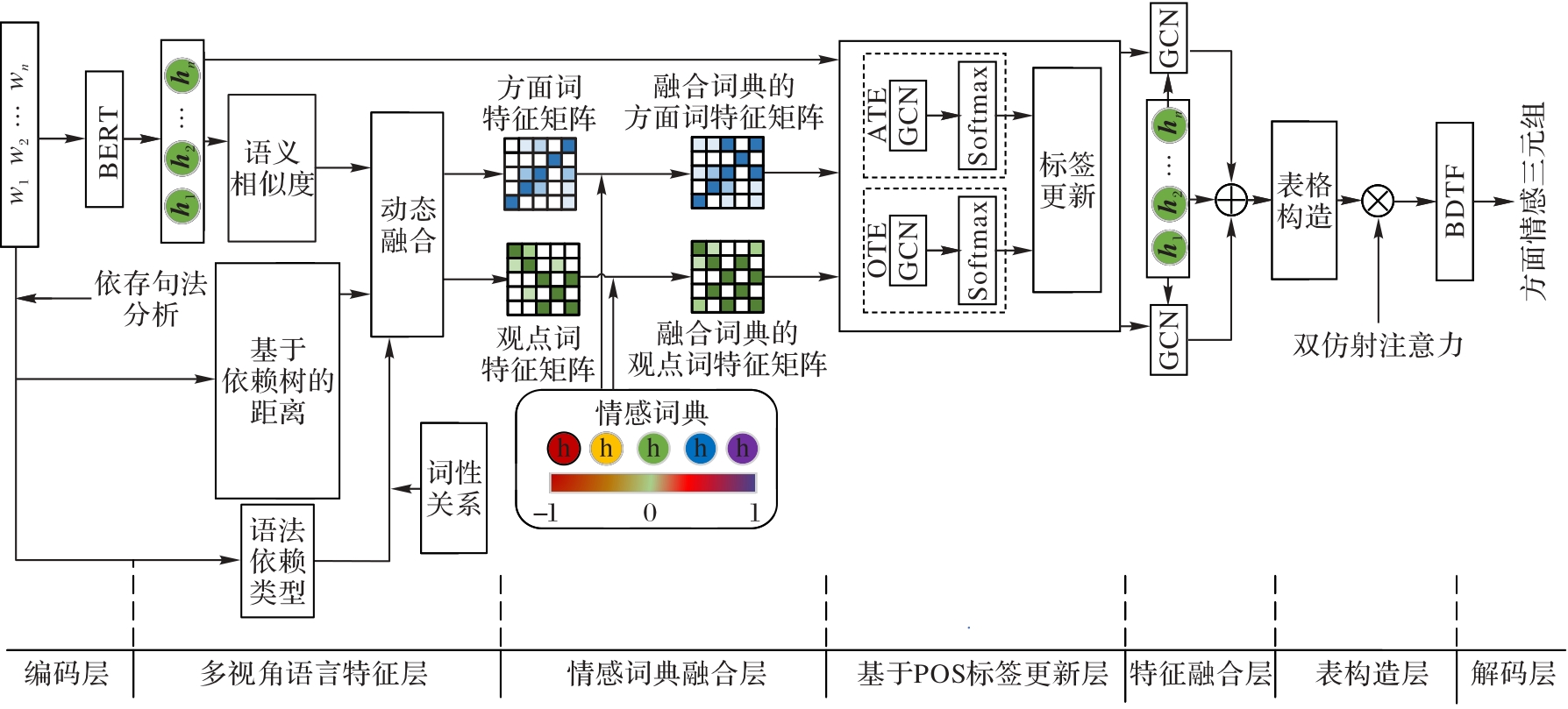 关键词: 方面情感三元组抽取, 句法依赖关系, 词性信息, 句法依赖距离, 图卷积网络