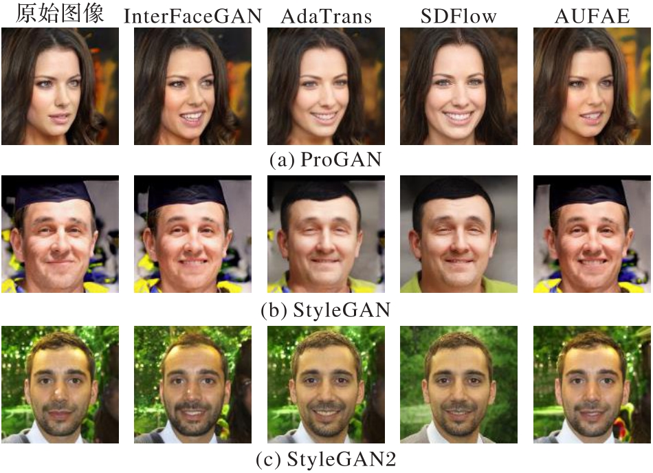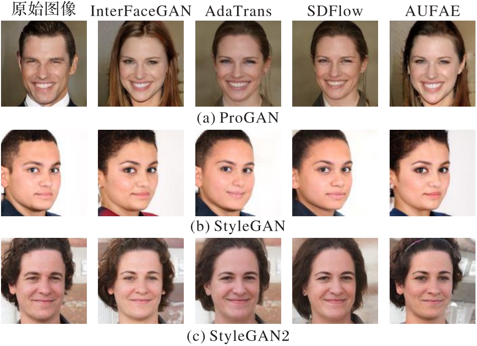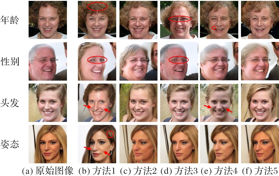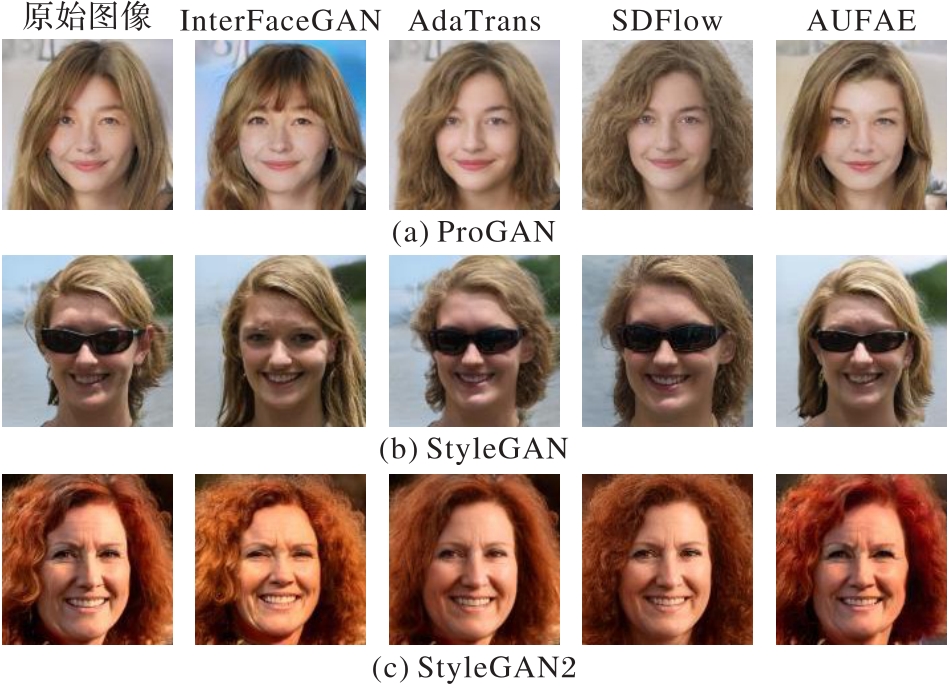 基于生成对抗网络(GAN)潜空间的无监督人脸属性编辑方法具有效率高和无需标注数据的优点,然而这类方法在解耦性和可控性方面仍面临挑战,如在操控特定人脸属性时,可能会引起其他属性的意外变化,从而影响编辑效果,以及难以精确控制所编辑人脸属性的变化程度。针对上述问题,提出基于动态卷积自编码器的无监督人脸属性编辑(AUFAE)方法。该方法通过在潜空间中学习有效的语义向量,实现对人脸属性的精准编辑。具体地,设计动态卷积自编码器网络(DCAE-Net)作为主干网络,该网络的编码器部分采用动态卷积(DyConv)的方式动态提取潜空间的局部特征,从而学习具有局部特性的语义向量;在解码器部分则融入通道注意力(CA)机制建立通道间的非线性依赖关系,使模型能够自主地聚焦不同语义相关的特征通道,有效促进语义向量的独立性学习。为了增强语义向量的解耦性和可控性,引入基于属性边界向量的损失函数训练DCAE-Net。此外,引入软正交损失确保语义向量之间相互独立,进一步提升解耦性能。实验结果表明,在3个预训练GAN生成模型上,与3种主流的人脸属性编辑方法相比,AUFAE的弗雷歇距离(FID)减小了37.43%~50.21%,学习感知图像块相似度(LPIPS)减小了23.61%~42.85%,结构相似性指数(SSIM)提高了7.04%~13.42%。在直观视觉上,AUFAE在人脸属性编辑过程中也未出现属性耦合现象。可见,AUFAE能够有效地缓解人脸编辑过程中的属性耦合现象,并实现更精确的人脸属性编辑。