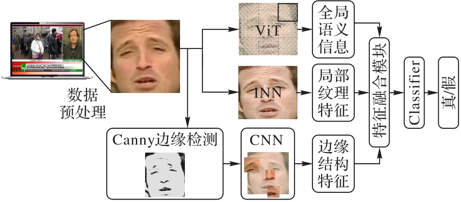 关键词: 人脸伪造检测, 多分支网络, Vision Transformer, 可逆神经网络, 边缘特征