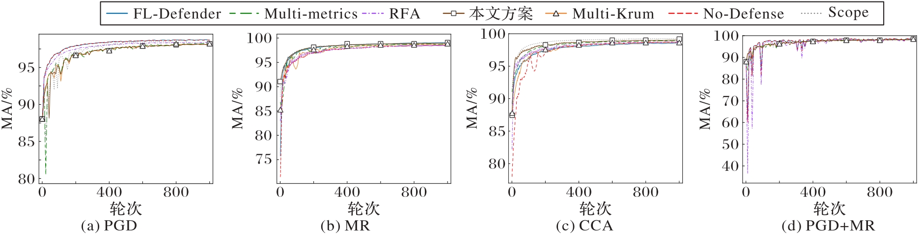 | 防御方案 | EMNIST | CIFAR-10 | ||||||
