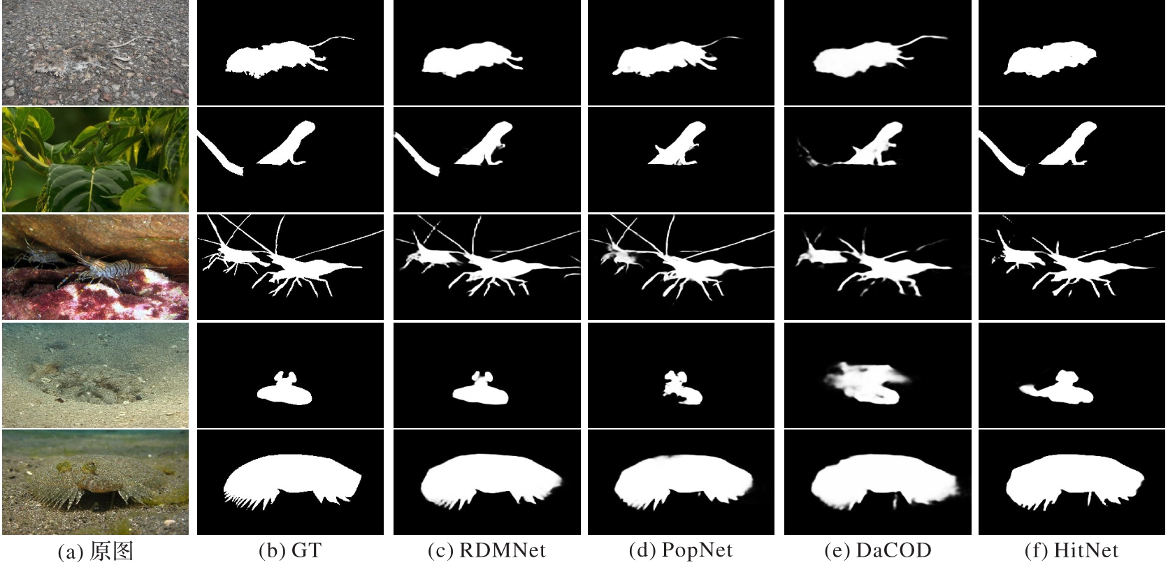 伪装目标因在纹理和颜色等视觉属性上与背景高度相似,导致RGB图像易受干扰,难以准确分辨目标位置,常导致分割结构不完整甚至目标缺失,从而影响检测性能。为了解决该问题,提出一种RGB-D双流镜像伪装目标检测(COD)网络——RDMNet(RGB-D Dual-stream Mirror Network)。首先,采用TransNeXt和Vision Mamba组成的混合主干提取特征,减少模型参数,并设计多模态特征融合(MFF)模块,利用RGB和深度信息融合增强深度特征。其次,设计深度定位模块(DPM)和定位引导完整性特征聚合(PGA)模块,前者用于生成完整的轮廓定位特征,后者用于快速地定位伪装目标,并高效地预测出完整的分割特征,两者交叉细化融合后,既关注伪装目标的整体结构,又不断细化分割特征和轮廓定位特征。最后,设计卷积门控通道注意力(CCA)模块,提取低层特征中的结构细节。实验结果显示:RDMNet在COD和RGB-D显著目标检测(SOD)数据集上优于当前15个代表性方法;在CAMO、COD10K和NC4K数据集上,与MVGNet(Multi-View Guided Network)相比,RDMNet在结构相似性度量(S-measure)、平均增强对齐度量(mean E-measure)、精度和召回率的加权平均值(weighted F-measure)方面分别平均提升了2.0%、1.5%和3.2%,而在平均绝对误差方面平均降低了17.2%。可见,RDMNet在COD中能够有效提高分割的完整性和准确性。